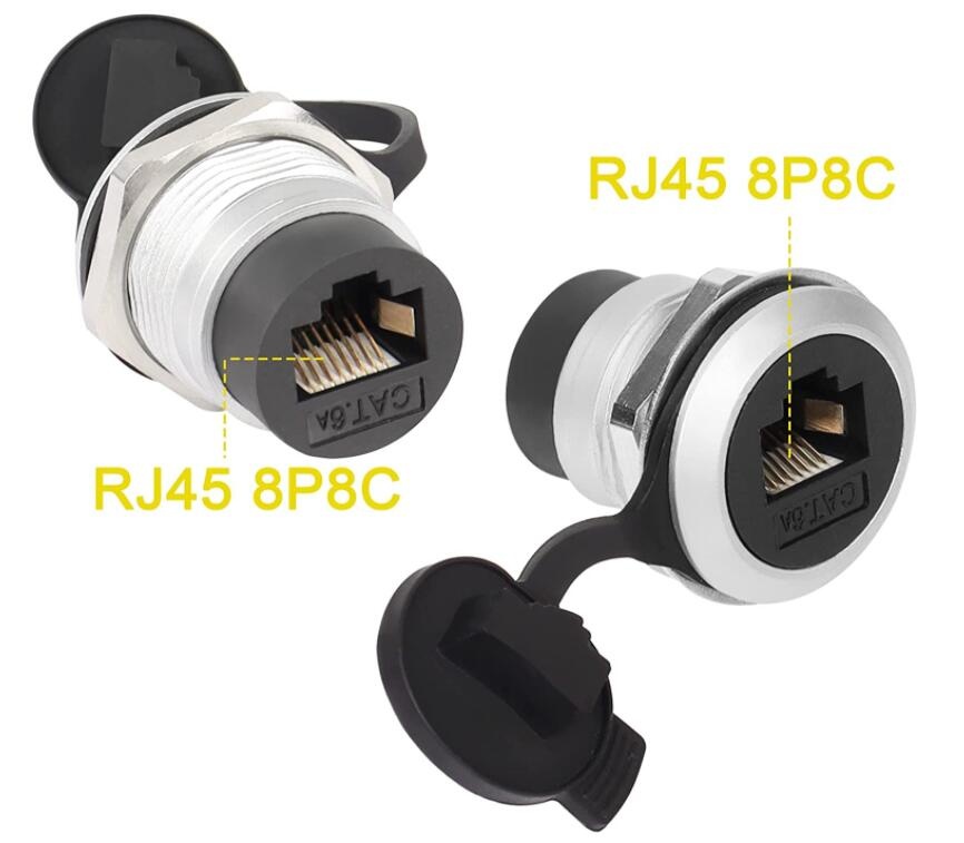RJ45 8P8C Female to Female Recessed Panel Mount Connector CAT6A Shielded, Anti-loosening Gasket Dustproof Cover, for Instrument Panel